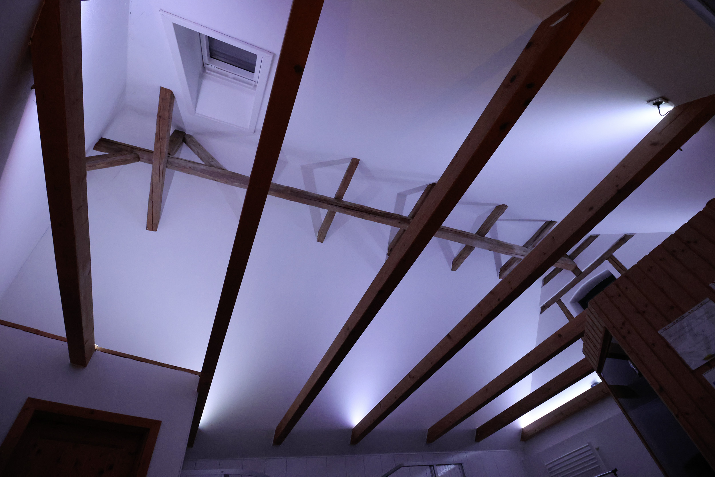 Im Obergeschoss eines separaten Gebäudes, Schlafnische, Spitzdach per Leiter erreichbar.